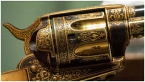 DELICIAS CHIH.- El 24 de julio de 2023 (hoy, que esto se escribe, hace exactamente 2 años), llegó bajo custodia militar a la Ciudad de Chihuahua una preciosa arma de fuego, un revólver cal. 38 especial, en cachas de marfil, pavonado negro con diseños de naturaleza orgánica, que en el mundo de las armas coloquialmente se le llama “rameado” en dorado; tal vez por los años del arma, tal vez debido al poco mantenimiento y limpieza, pero el pavonado negro en cierto ángulo de iluminación, presenta un tono azul profundo que al contrastar con el rameado dorado la hace lucir más hermosa.