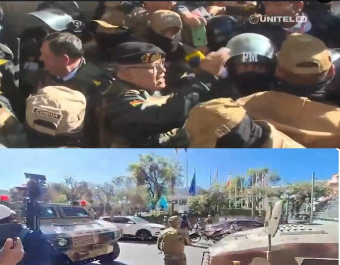 ” No puede seguir mas así nuestro pais,  nuestro Estado, haciendo lo que se les de gana, señaló el general Zuñiga, que acaba de tomar la Plaza Murillo, rodeando la casa de Gobierno.