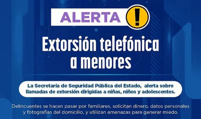 CHIHUAHUA CHIH.- La Secretaría de Seguridad Pública del Estado emitió una alerta preventiva ante la detección de un nuevo método de extorsión telefónica dirigido a niñas, niños y adolescentes, el cual ha sido identificado a través de reportes ciudadanos.