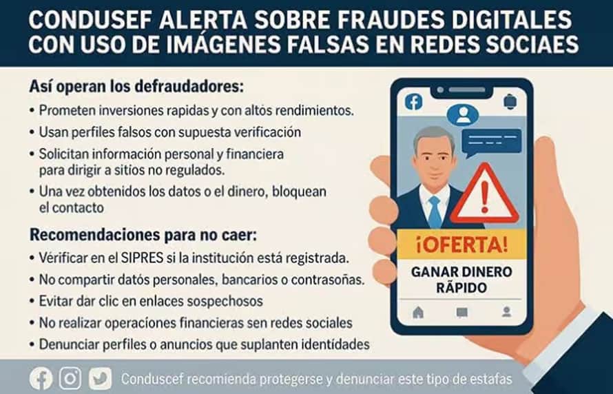 CHIHUAHUA CHIH.- La Comisión Nacional para la Protección y Defensa de los Usuarios de Servicios Financieros (CONDUSEF) lanzó una alerta urgente a la población sobre una nueva modalidad de fraude digital en la que delincuentes suplantan la identidad de figuras públicas y creadores de contenido financiero para ofrecer falsas inversiones y defraudar a los usuarios.