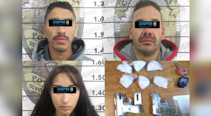 En sus ropas traían pistolas tipo escuadra, seis envoltorios plásticos con lo que parecía la droga “cristal”.