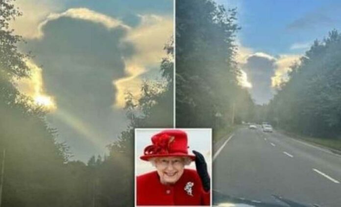 Y es que resplandecientes nubes con la forma del perfil de la Reina se formaron en el cielo solo unas horas después de su fallecimiento.