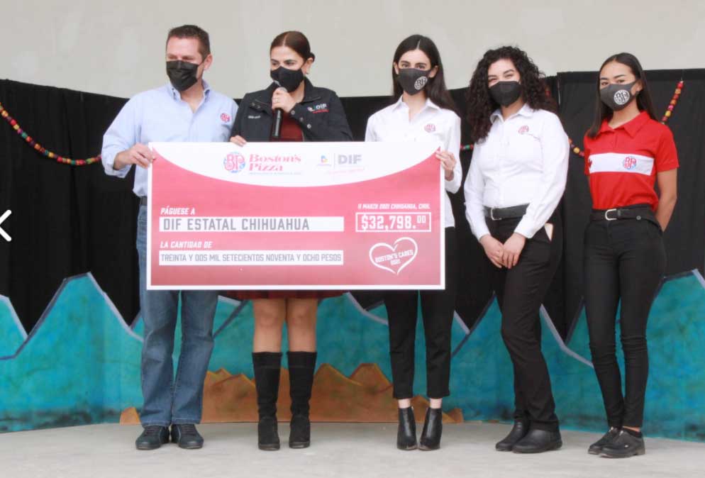 CHIHUAHUA CHIH.- La empresa Boston´s Chihuahua, entregó al DIF Estatal durante el evento, un donativo por 32 mil 798 pesos, correspondientes a su campaña anual “¿De qué tamaño es tu corazón?”
