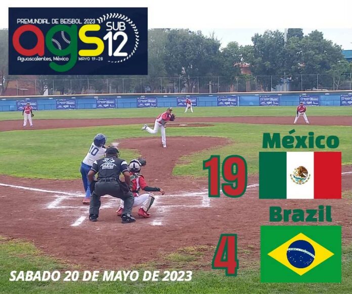 AGUASCALINTES AGS.- Los 4 jovencitos de Chihuahua que integran la selección de México en el Premunidal que se juega en esta ciudad están brillando enormemente al bat y así lo hicieron en el triunfo de su novena esta tarde frente a Brasil al son de 19 carreras a 4.