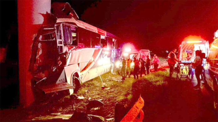 De acuerdo con el reporte oficial, el accidente se registró al ingresar a la capital, cuando el autobús de servicio subrogado se impactó contra la estructura de un puente en el Libramiento Oriente.