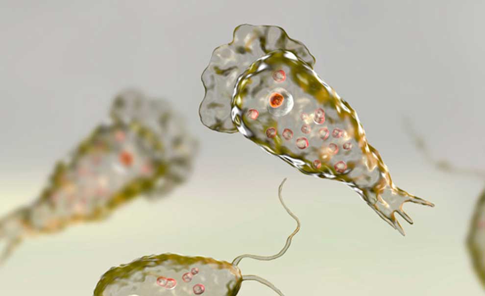 La Naegleria fowleri es un organismo unicelular que vive en la tierra y en las aguas cálidas como los manantiales, lagos y ríos de todo el mundo. La ameba entra en el cuerpo por inhalación, por la nariz, y se desplaza hasta el cerebro.