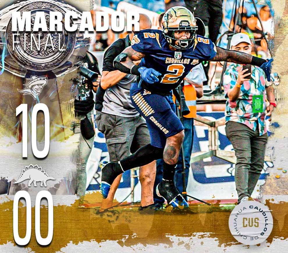 CHIHUAHUA CHIH.- Los Caudillos se coronaron por primera vez en la LFA al superar a Dinos con un marcador de 10-0 en el estadio Olímpico Universitario de la UACH, con un acarreo de Fernando Mejía y goles de campo de Héctor López, y cierra la temporada 2023 como el único equipo invicto en la historia de la liga.