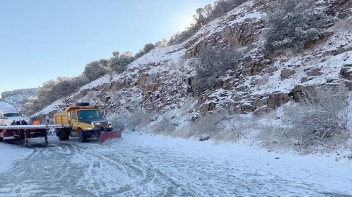 CHIHUAHUA CHIH.- La región serrana de Janos, Llegó la primera nevada de la temporada, y con ella, el centro SICT Chihuahua despliega las cuadrillas para restablecer la circulación en la carretera Janos-Agua Prieta”, informó esta mañana la dependencia federal.