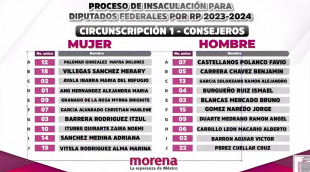 EL CONSEJO Nacional de Morena, dio a conocer las candidaturas para las diputaciones plurinominales por circunscripción.