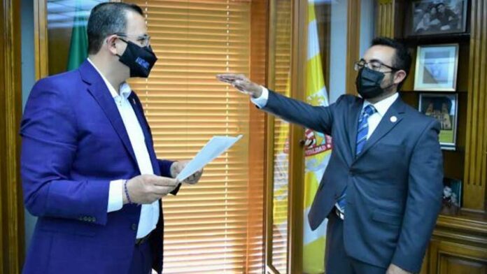 La toma de protesta del nuevo funcionario se realizó en el despacho del acalde y en presencia de algunos integrantes de esta área.