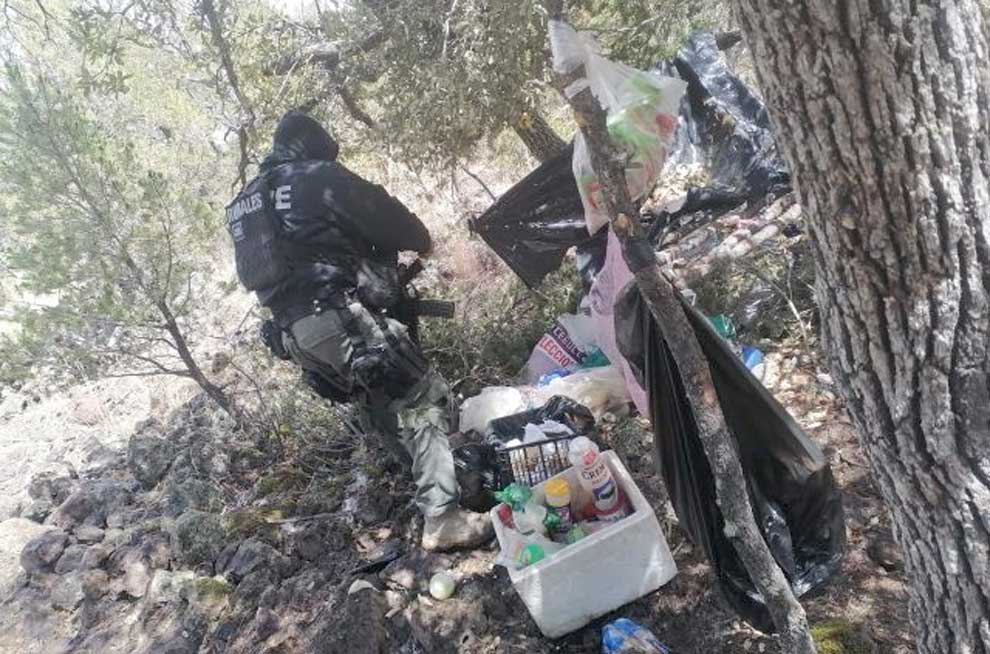 Los elementos de la Policía del Estado realizaban recorridos pedestres en los cerros aledaños al poblado La Concha, y localizaron el campamento habilitado con casas de campaña, hules, alimentos y cubierto por ramas y hojas para esconderlo.