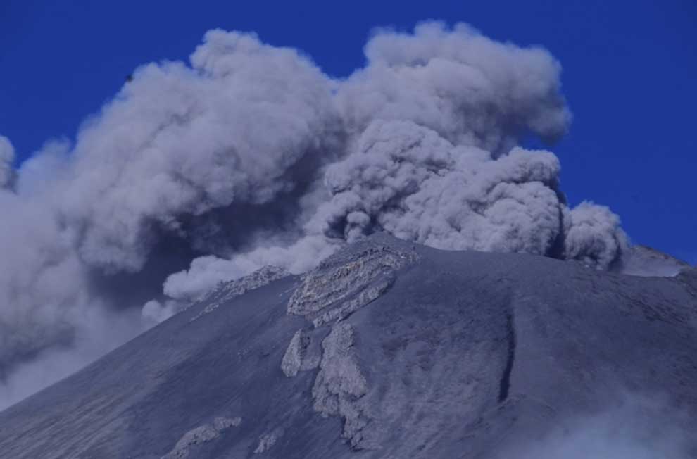CDMX.- Las explosiones en el cráter del volcán Popocatépetl no han parado en los últimos dos días, registrándose explosiones con magma y lluvia de cenizas en las comunidades cercanas, por lo que la Comisión Nacional de Protección Civil aumentó la alerta por la actividad en ‘Don Goyo’ de Amarillo Fase 2 a 3 este domingo.