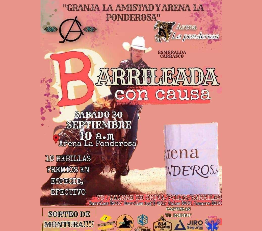 CHIHUAHUA CHIH.- Granja La Amistad y La Arena La Ponderosa, invitan este 30 de septiembre “Barrileada en beneficio de la joven Esmeralda Carrasco”, para gastos hospitalarios.