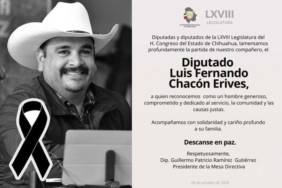 GUERRERO CHIH.- Durante la madrugada de este domingo 26 de octubre, falleció el diputado local Luis Fernando Chacón Erives, representante del Distrito 13 con cabecera en el municipio de Guerrero, generando una profunda consternación entre la clase política estatal.