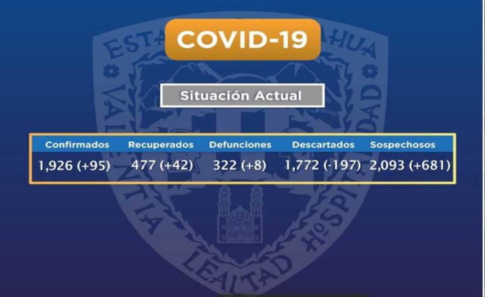 CHIHUAHUA CHIH.- El informe epidemiológico correspondiente al 29 de mayo del 2020, arrojó otros 95 contagios confirmados en el estado para sumar un total de mil 926 casos de COVID-19, informó la Secretaría de Salud.