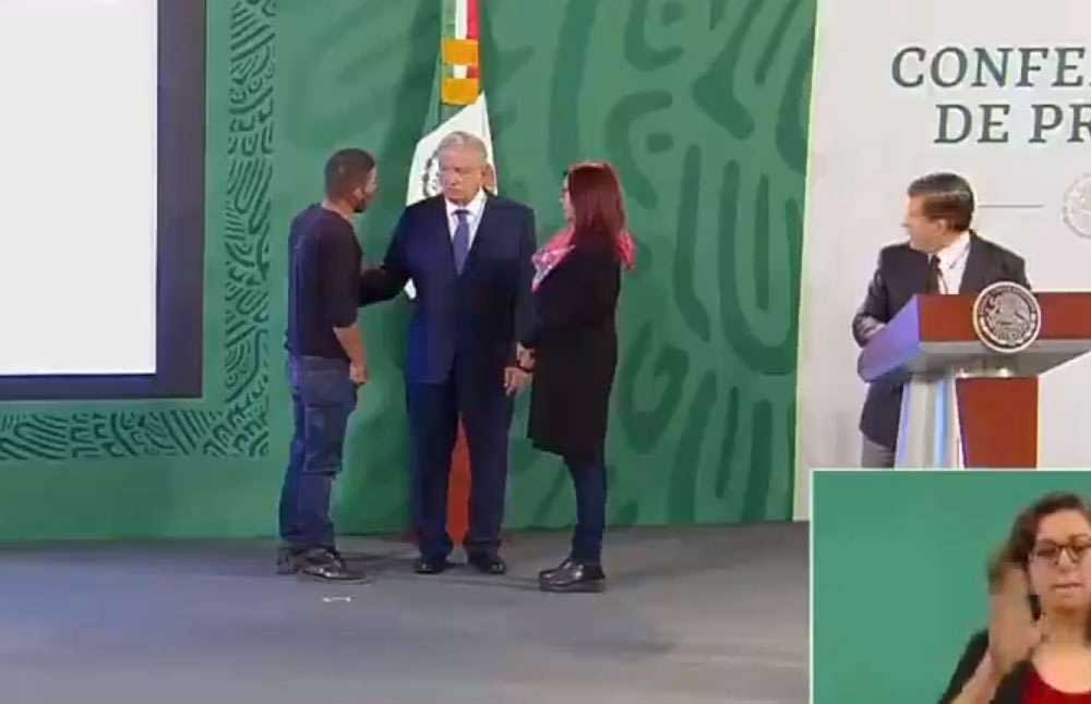 En la mañanera se observó como el ciudadano se acercó al mandatario mientras la responsable de atención ciudadana, Leticia Ramírez lo acompañaba.