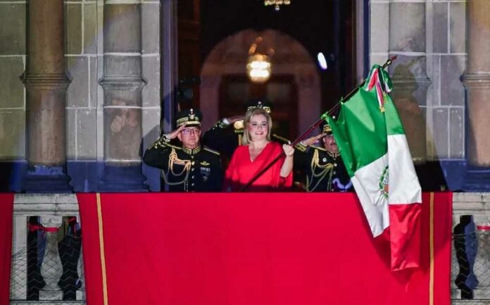 CHIHUAHUA CHIH.- La gobernadora María Eugenia Campos dio El Grito donde reconoció la importancia de la paz, la unión, la solidaridad entre los ciudadanos, esto ante un centro histórico lleno con más de 60 mil personas.
