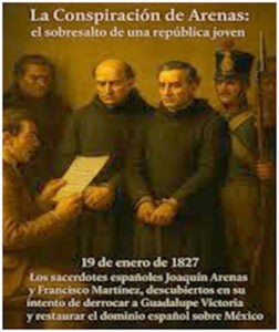 En ese momento, a una señal del General Mora, aparecen los Capitanes Joaquín Muñoz y Francisco Ruiz Fernández al frente de un grupo de soldados que aprehenden al Padre Arenas, quien grita un par de consignas contra el Presidente Guadalupe Victoria, otra a favor del Rey Fernando VII, para terminar gritando “Viva España y viva la religión de Jesucristo”.