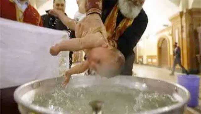 En la religión ortodoxa los bebés son bautizados sumergiéndolos tres veces en el agua y los sacerdotes son encargados de tapar la boca y nariz y de hacer este procedimiento con cuidado.