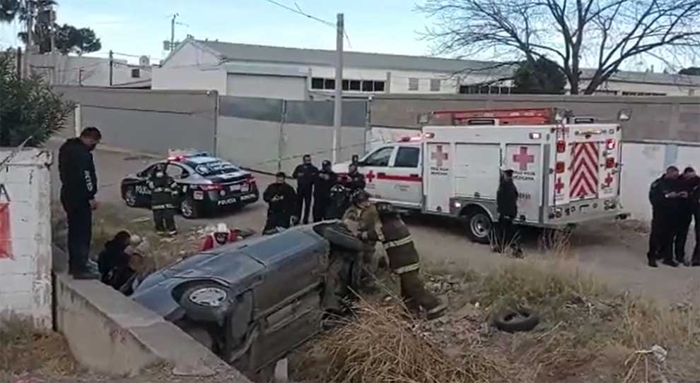 CHIHUAHUAHA CHIH-. Una conductora de un Nissan Tiida de reciente modelo, perdió el control y volcó a un costado de la avenida Sacramento, en la calle Miguel Aguilar.