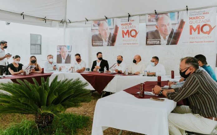 CHIHUAHUA CHIH.- Siguiendo con su agenda de campaña, que aparte de los recorridos territoriales para estar en contacto directo con la gente, el candidato a la presidencia de Chihuahua, Marco Adán Quezada Martínez, suma encuentros con diferentes grupos de la sociedad civil que desean aportar apoyo a sus propuestas de gobierno, así, se reunió con el Frente Civil Evangélico de Chihuahua que ofrece coadyuvar al candidato en la realización de políticas públicas a favor de una mejor sociedad.