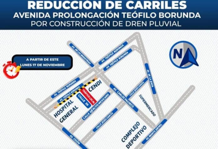 Los trabajos iniciaron a las 9:00 de la mañana y afectan el carril lateral de la prolongación Teófilo Borunda, a la altura del Hospital General “Dr. Salvador Zubirán Anchondo”, con dirección hacia la avenida Carlos Pacheco. Además, la calle 39 quedó habilitada únicamente para tránsito local entre la prolongación Borunda y la calle Ejército Mexicano, por lo que se recomendó a automovilistas manejar con precaución.