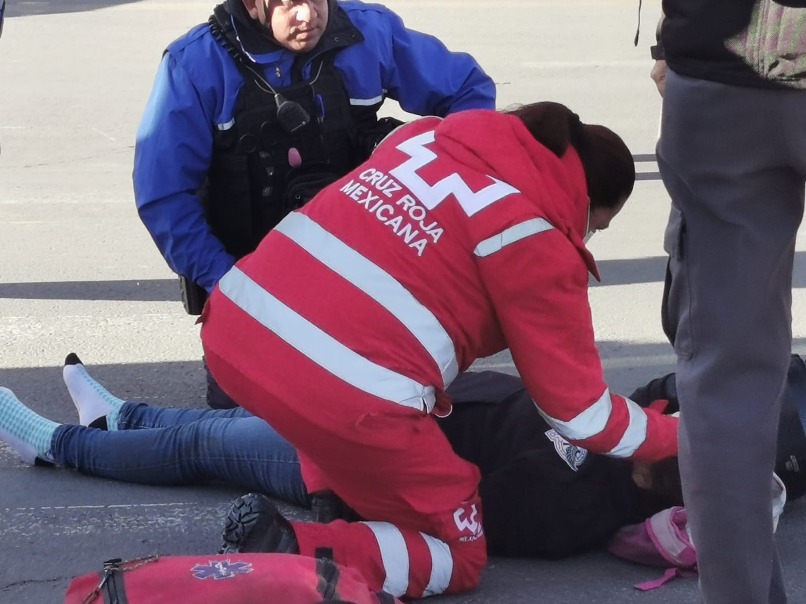 El incidente ocurrió en contra esquina de Palacio de Gobierno, justo frente a Plaza del Ángel, a donde acudieron paramédicos de la Cruz Roja para brindarle primeros auxilios a la conductora de la motocicleta, misma que resultó con heridas graves.