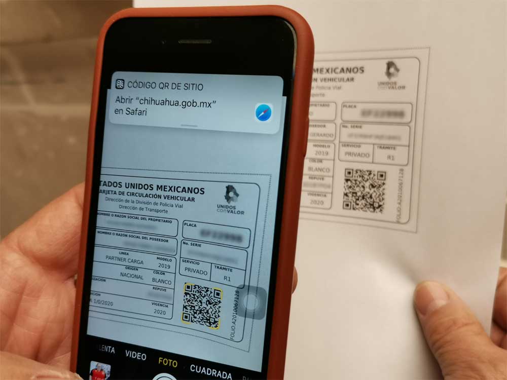 CHIHUAHUA CHIH.- A partir de este año Gobierno del Estado entregará tarjetas de circulación que incluyen en su formato un código QR (de respuesta rápida por sus siglas en inglés), para consultar con cualquier teléfono inteligente la situación fiscal del vehículo al que corresponda.