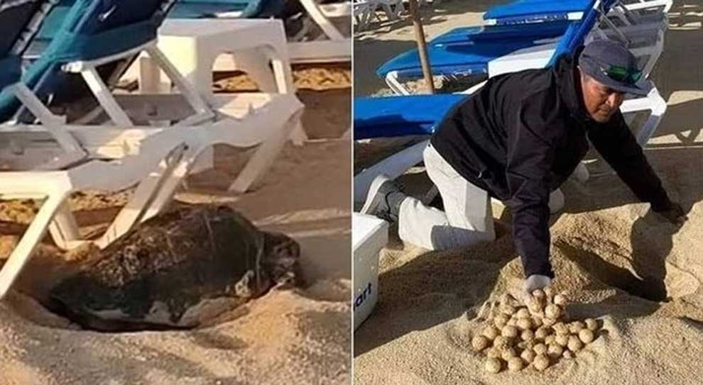 El hecho se registró el viernes 7 de abril y un video difundido ampliamente en redes sociales muestra el momento en el que la tortuga desova en la zona turística.